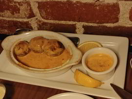 We put our name on the Yelp Waiting List before we left our house. Yelp said the wait would be about 40 minutes. But when we got to the restaurant, they said it would still be another 30 minute wait for our table. However, we were allowed to wait in the bar area and order a drink We ordered a bottle of their featured wine, Exitus. It was quite good. Most restaurants in Fullerton are open for outdoor patio dining but not for indoor dining. Stubrik's Steakhouse has an area set up for outdoor patio dining, but they are not using it. They are allowing indoor dining instead. I'm not sure why Stubrik's is allowed to provide indoor dining while other restaurants in Fullerton are not, but it is great to have a place to go on colder evenings.